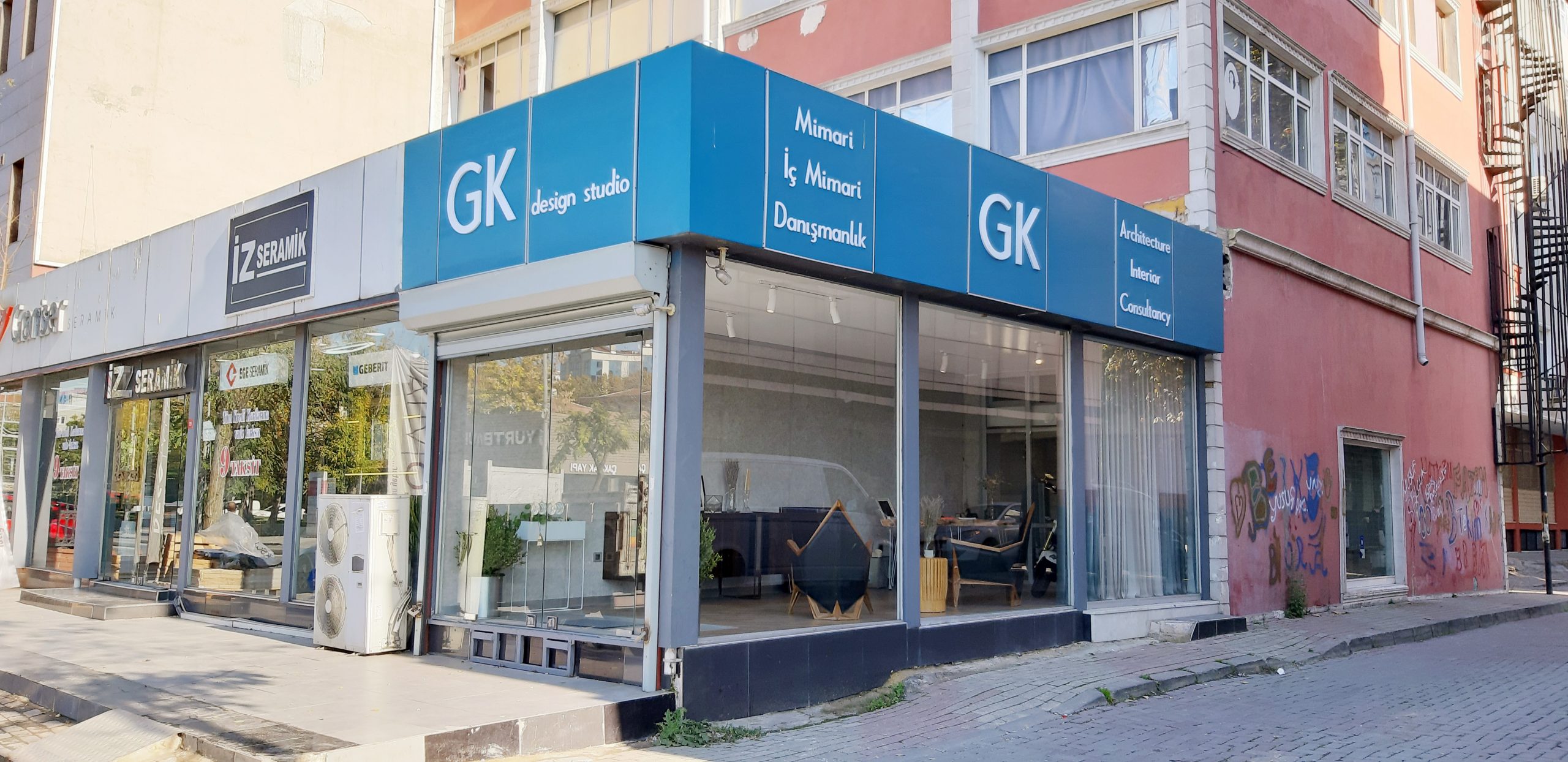 GK design studio, mimari tasarım stüdyosu olarak; mobilya,seramik tasarımından mekan tasarımına, enstelasyonlar ve sergilerden konut,ofis,mağaza,restaurant yapımına kadar çeşitli alanlarda tasarım, danışmanlık ve uygulama hizmeti verir.