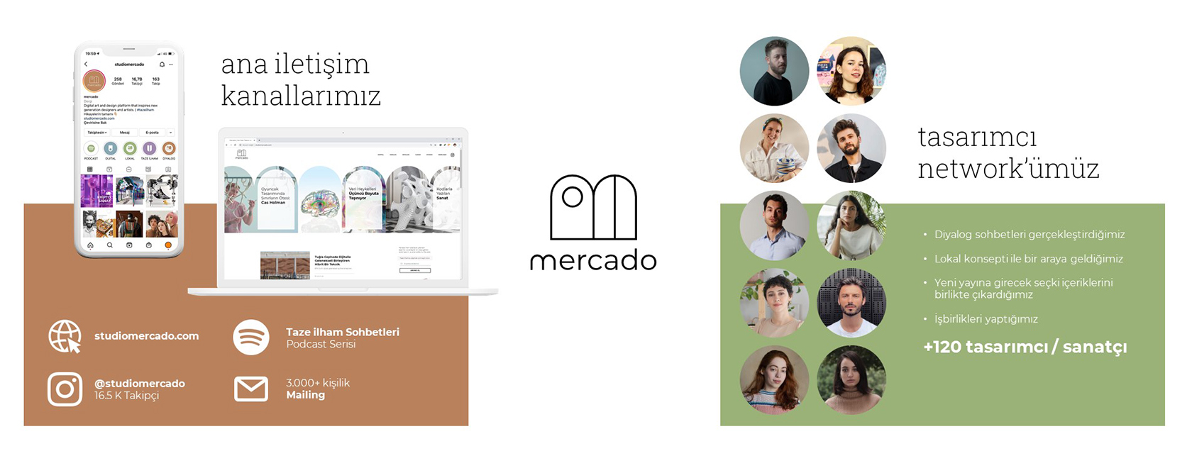 Mercado, yeni nesil tasarım ve sanat platformu. Multi-disipliner yaratıcı üretimlerinin derlendiği bir içerik platformu olmasının yanı sıra bu alanlarda çalışan sanatçı ve tasarımcıların bir araya geldiği bir network.